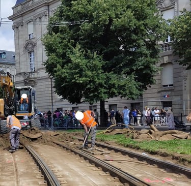 A cela s'ajoutent les sujets relatifs à l'environnement direct, à savoir : les emprises et les installations de chantier, les voies d’accès aux bâtiments à proximité, la sécurisation des travaux vis à vis des tiers, les aménagements provisoires pour le maintien des itinéraires des modes actifs et routiers et éventuellement les déviations routières lorsque la technicité des travaux ou l'espace disponible ne le permettent pas. Bon courage à l’ensemble du personnel déployé tout cet été sur le réseau strasbourgeois. 💪💪💪