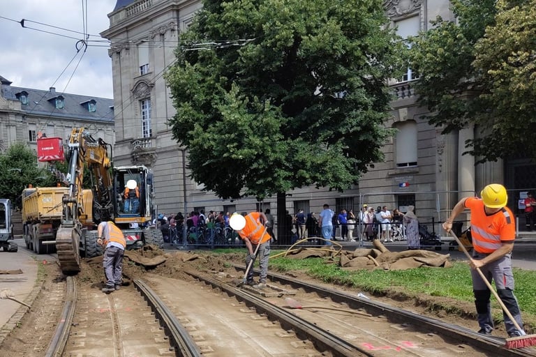 La deuxième phase de travaux de renouvellement des rails et des appareils de voie a débuté ce lundi 22 juillet sur le réseau strasbourgeois. Plusieurs entreprises sont mobilisées sur ces travaux d’ampleur qui permettront aux tramways de rouler sur des nouveaux rails et appareils de voie.